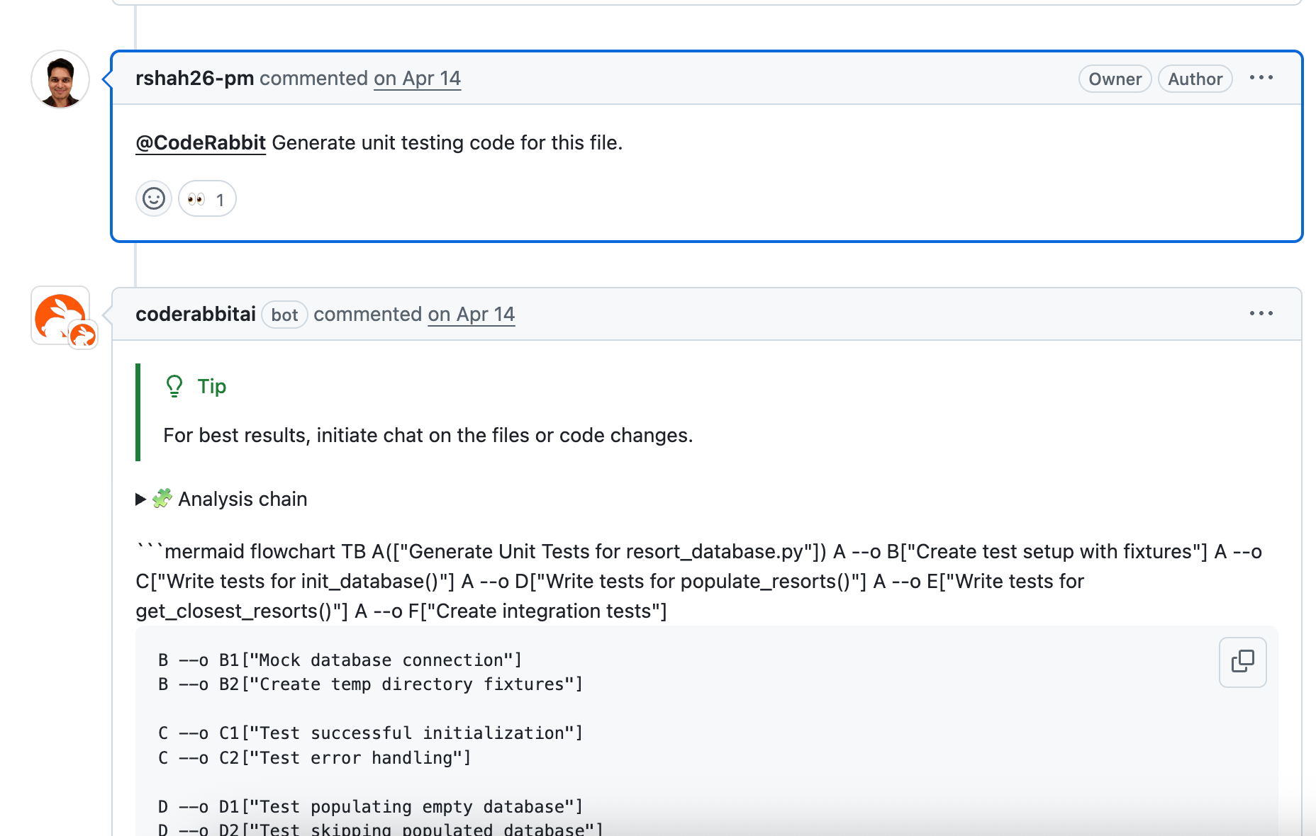 Mainly docstrings and unit test generation. You know, all the fun stuff that developers absolutely love to do. But seriously, the best use case of AI is to do repetitive stuff that is boring but important. Can’t get more important than updating docstrings and unit tests. You can simply chat with coderabbit and ask it to validate and update your docstrings file or generate a unit test file and they will be added on as a stacked PR.